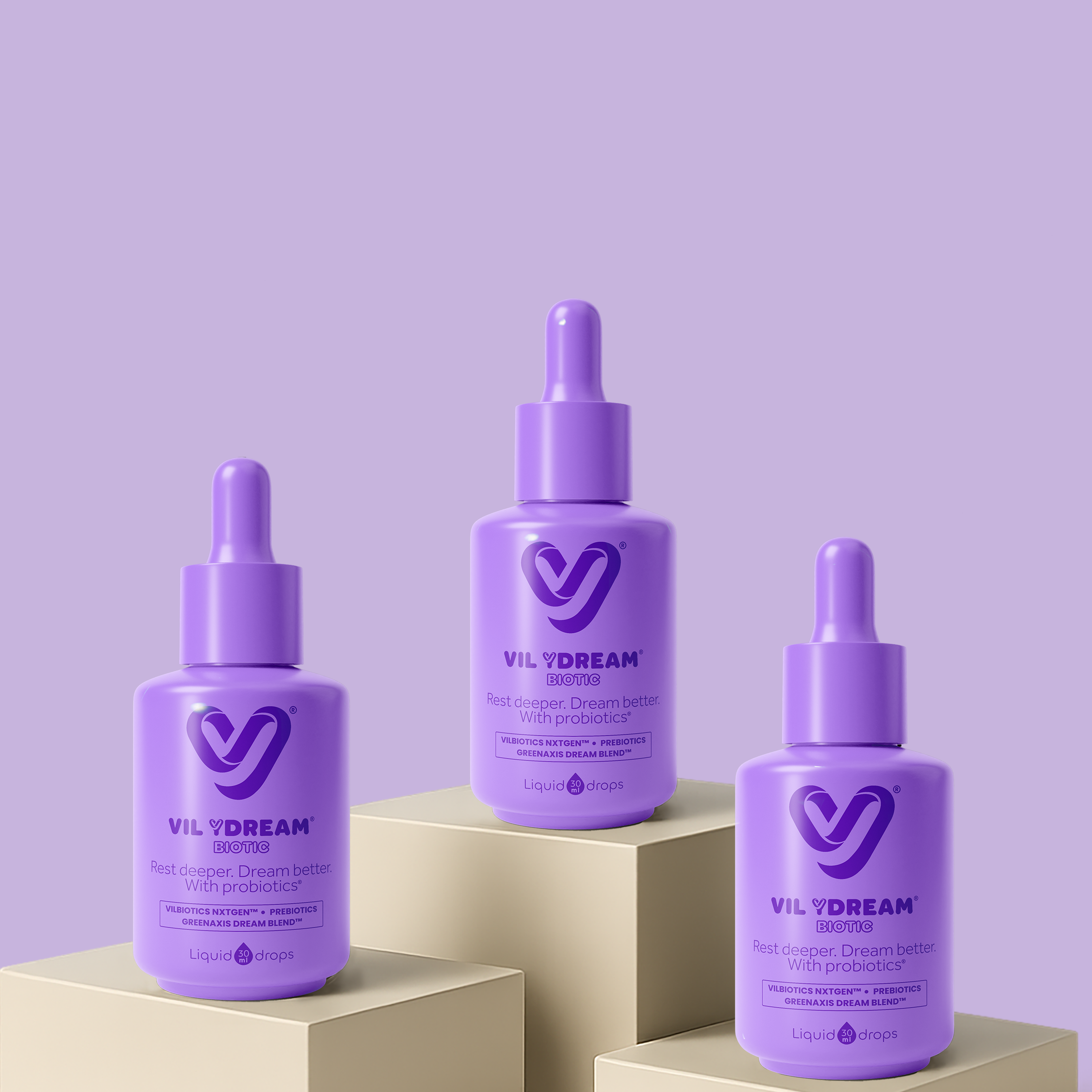 VIL YDream Biotic es un tratamiento en gotas desarrollado para mejorar la calidad del sueño, ayudarte a conciliarlo más rápido y lograr un descanso profundo y reparador. Combina probióticos de última generación (VILBIOTICS NXTGEN™), prebióticos y una mezcla funcional de extractos naturales y micronutrientes llamada GREENAXIS DREAM BLEND™, ideal para promover un sueño saludable de manera natural.