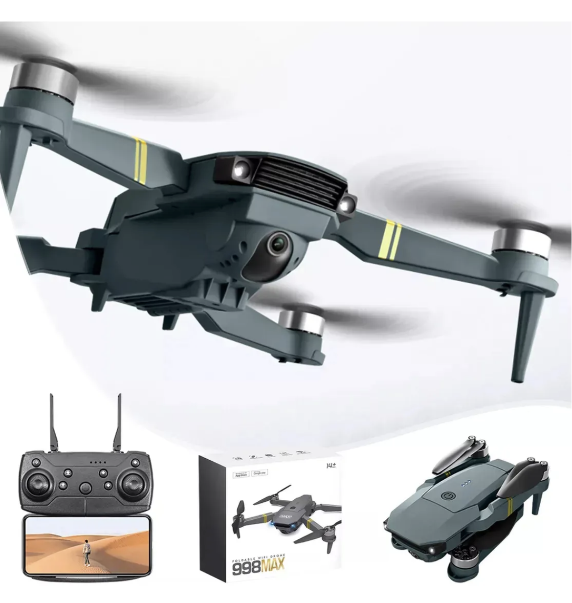 El Drone 998 / 998 MAX es un dron plegable diseñado para entretenimiento y práctica, ideal para quienes quieren iniciarse en el vuelo de drones de forma sencilla. Integra cámara HD 720p y transmisión WiFi FPV, lo que permite ver en el celular una vista en tiempo real (según condiciones de señal), además de funciones de estabilidad como giroscopio de 6 ejes para ayudar a mantener un vuelo más controlado en maniobras básicas.